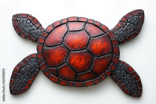 Fototapeta premium Intricate red and black sea turtle sculpture.