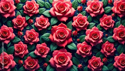 Fototapeta premium Intricate repeating rose pattern in vibrant hues , botanical, nature