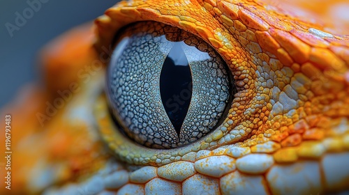© Owner, Fototapeta premium Intricate Reptile Eye Close-Up: Vibrant Orange Scales and Gray-Blue Iris