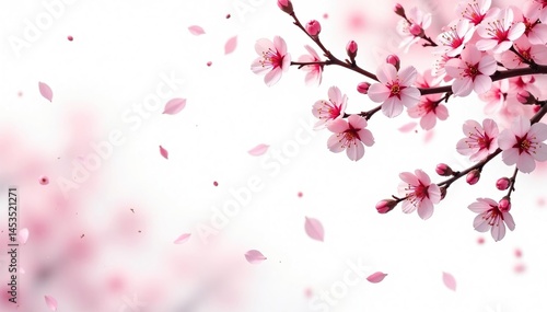 Naklejka premium Intricate sakura branch pattern, scattered blossoms, white background , nature, textile