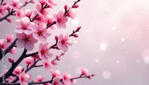 © Latsamee, Fototapeta premium Intricate sakura branch pattern, vibrant pink and white hues, print, bloom