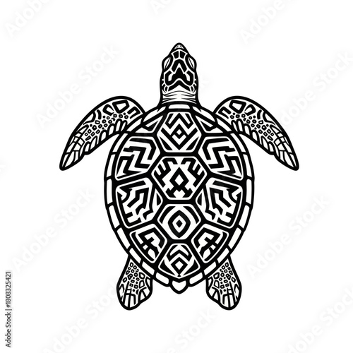 Fototapeta premium Intricate Sea Turtle Illustration - A Detailed Black and White Design.