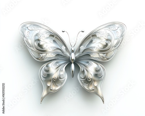 © Stephen, Fototapeta premium Intricate silver butterfly sculpture on white background