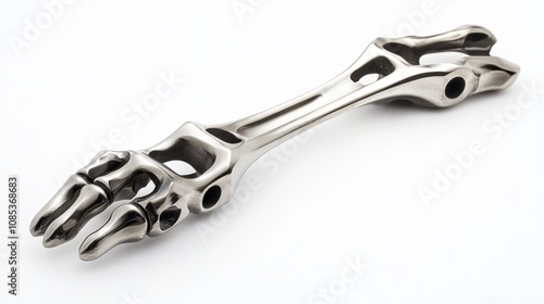 Obraz premium Intricate Skeletal Sculpture: A Metallic Masterpiece of Bone and Chrome