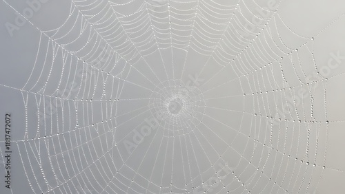 © Meharban, Fototapeta premium Intricate Spider Web on Grey Background with Dew Drops