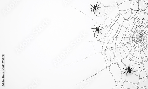 © Юрий Гончарук, Obraz premium Intricate Spider Web on White Background