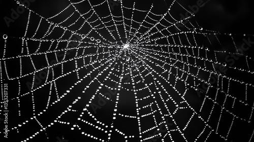 © stylub, Fototapeta premium Intricate spider web with dew drops glistening.
