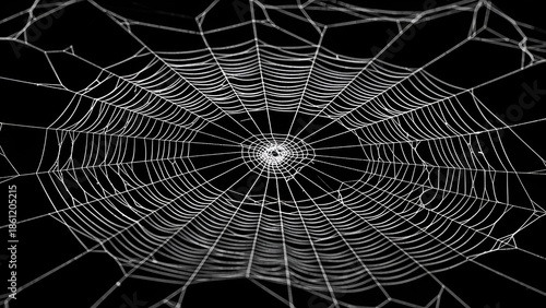 © Nur, Obraz premium Intricate spiderweb against a black backdrop displaying nature's artistry