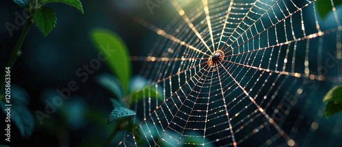 Naklejka premium Intricate Spiderweb, Dramatic Lighting
