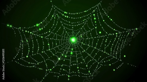 Naklejka premium Intricate spiderweb glistening with morning dew, a mesmerizing display of...