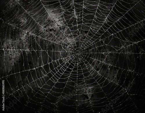 © munawaroh, Obraz premium Intricate Spiderweb on Dark Background.