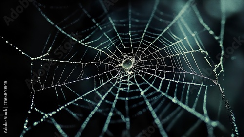 Fototapeta premium Intricate Spiderweb with Dew Drops: Nature Macro Photography