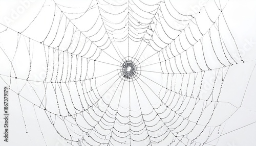 © Pure Imagination, Fototapeta premium Intricate Spiderweb with Dew Drops on White Background in Macro Shot