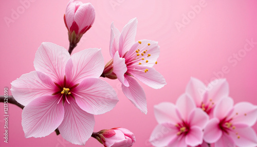 © Iryna, Fototapeta premium Intricate stamens of cherry blossom flowers in macro detail, softly blurred pink background