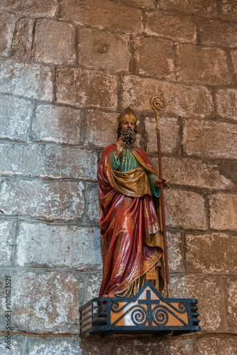 Fototapeta premium Intricate Statue of a Saint in a Historic Sardinian Church Interior