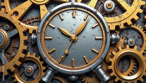 Obraz premium Intricate steampunk clock design with gears, vintage industrial art