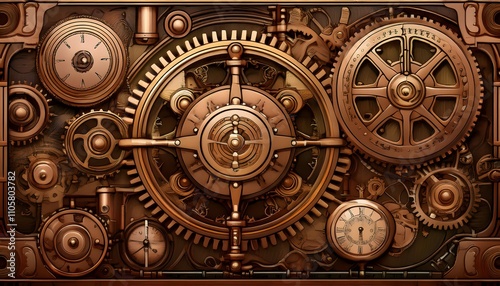 Fototapeta premium Intricate steampunk machinery with gears and cogs in a bronze tone