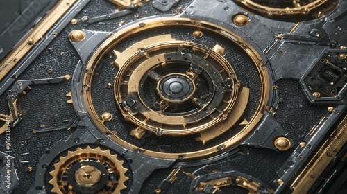 Fototapeta premium Intricate steampunk mechanism featuring gears, cogs, and metal textures