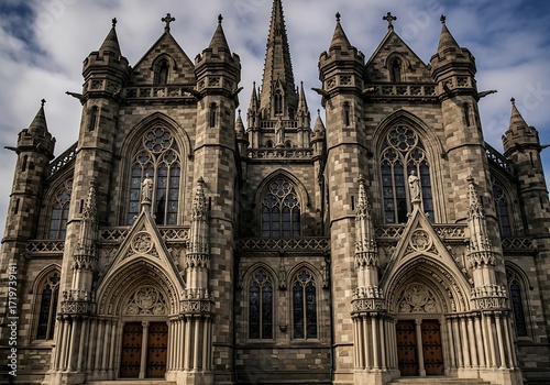 Fototapeta premium Intricate stonework adorns a grand gothic cathedral against a backdrop of...