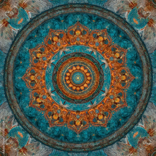 Naklejka premium Intricate Teal And Orange Mandala Pattern