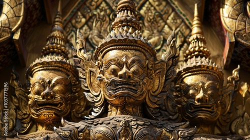 © Thinnawat, Fototapeta premium Intricate Thai Sculpture with Golden Details
