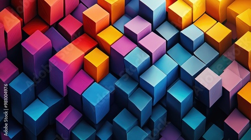 Obraz premium Intricate three-dimensional design with bold color cubes, creating a dynamic...