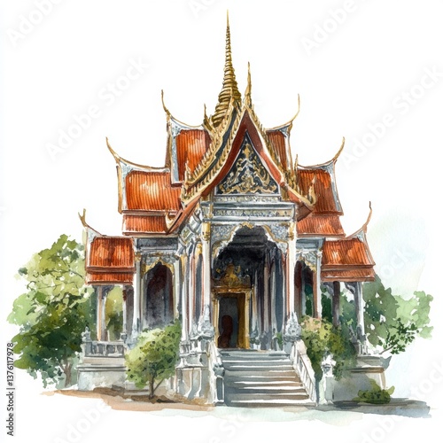 © อารียา วงษ์พัฒน์, Naklejka premium Intricate Traditional Thai Temple with Ornate Architecture and Nature