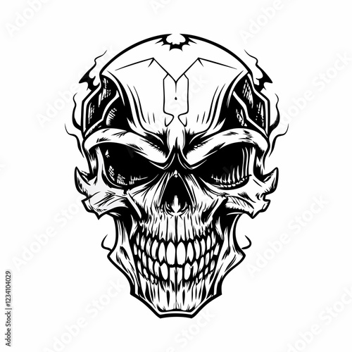 © chocobibi, Fototapeta premium Intricate Tribal Skull with Hands Gripping the Head and Bold Line Art
