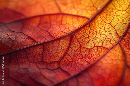 Fototapeta premium Intricate vein structure of an autumn leaf, vibrant red and orange hues,...