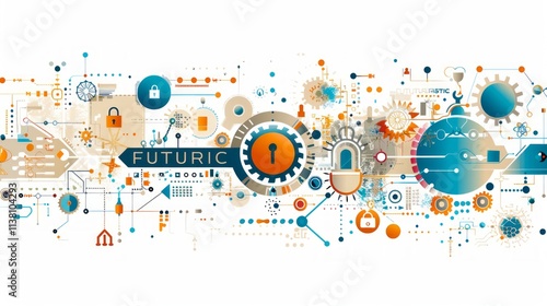 © Arifin Studio, Obraz premium Intricate, vibrant technology network with locks.