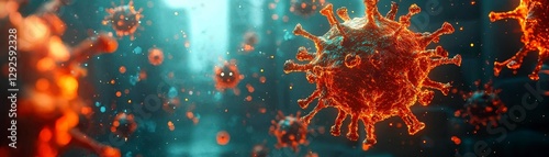 Fototapeta premium Intricate Viral Replication Simulated Rendering of Pathogenic Microorganism...