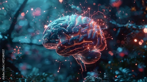 © nicole, Fototapeta premium Intricate visualization of illuminated neural networks within the human brain, showcasing the complexity of human cognition and intelligence in a futuristic setting