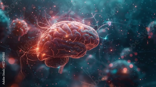 Fototapeta premium Intricate visualization of illuminated neural networks within the human brain, showcasing the complexity of human cognition and intelligence in a futuristic setting