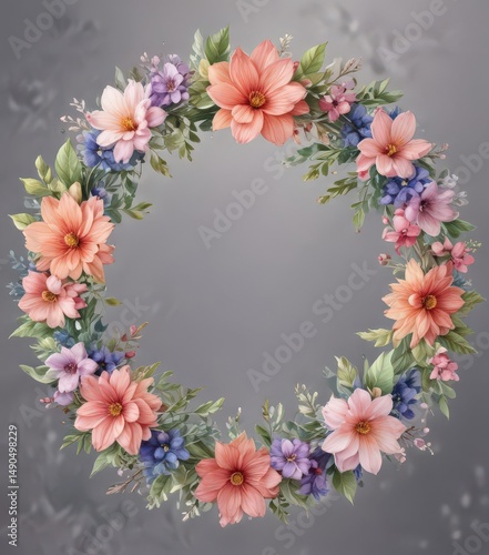Obraz premium Intricate watercolor petal design, floral wreath , invitation, pastel, texture