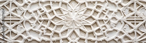 © Banstanks, Obraz premium Intricate white architectural relief showcasing geometric patterns and designs, emphasizing craftsmanship