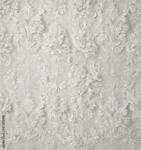 © Nawata, Obraz premium Intricate white damask floral wallpaper, elegant design , floral, elegant design, design element