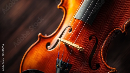 © Kopgz-41, Fototapeta premium Intricate Wood Grain and Gleaming Strings: A Close-up Violin Portrait