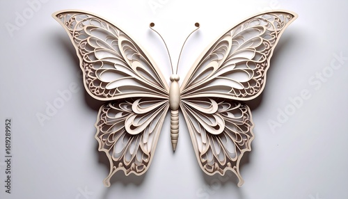 © Harno, Fototapeta premium Intricate wooden butterfly artwork with layered paper and delicate design elements