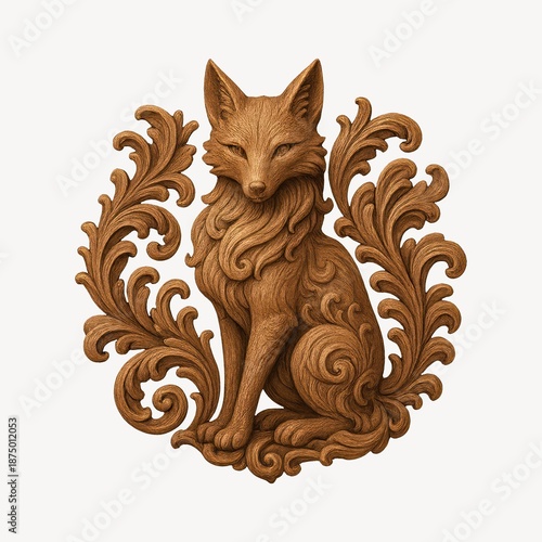 © Rawpixel.com, Obraz premium Intricate wooden fox carving design.