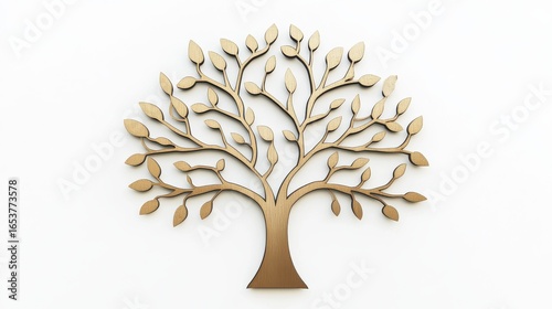 © vadosloginov, Naklejka premium Intricate wooden tree decoration with branches and leaves indoors
