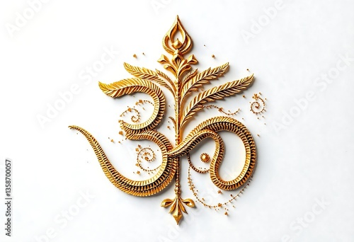 © Subrata, Obraz premium "Intricately Crafted Golden Om Symbol, Embellished With Flamelike Patterns and Whirling Decorative Details, Representing Spiritual Essence and Sacred Significance Across Indian Philosophies."