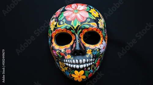 © Nany, Naklejka premium Intricately designed Day of the Dead mask featuring vibrant colors and floral patterns, perfect for celebrations