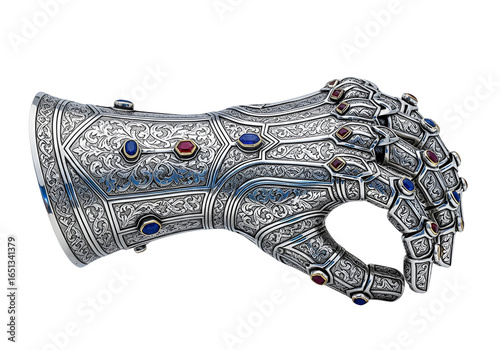© Muhamad, Obraz premium Intricately Designed Silver Hand Jewelry with Gemstones and Artistic Carving