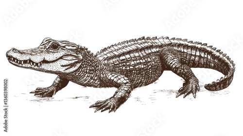 © Innovative Shots, Naklejka premium Intricately Detailed Vintage Illustration of an Alligator Isolated on White Background