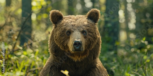 Obraz premium Intrigued Brown Bear in the Woods Establishing Eye Contact with Observer
