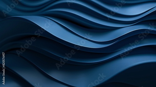 © Aina Tahir, Obraz premium Intriguing abstract banner design with fluid dark blue paper waves, captivating the viewer's attention.