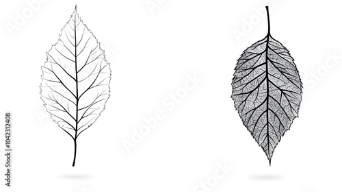 Fototapeta premium Intriguing Black and White Minimalist Tree Leaf Design with Cartographical...