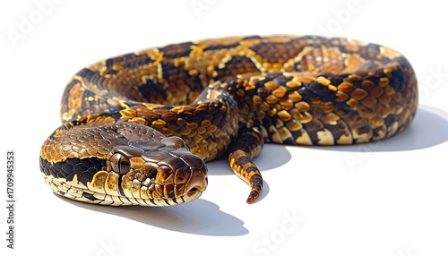 Fototapeta premium Intriguing coiled serpent against a pristine white backdrop