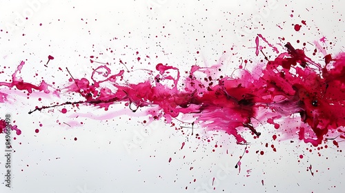 Fototapeta premium Intriguing patterns formed by vibrant ruby paint splatters on a clean white...