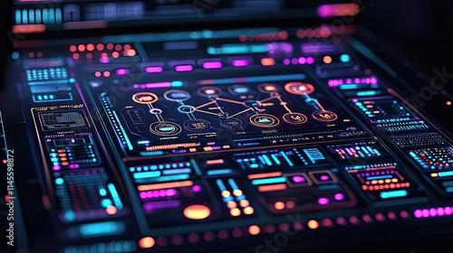 © Tin, Obraz premium Inventory management concept. Futuristic interface design with colorful digital elements and data visualization tools.
